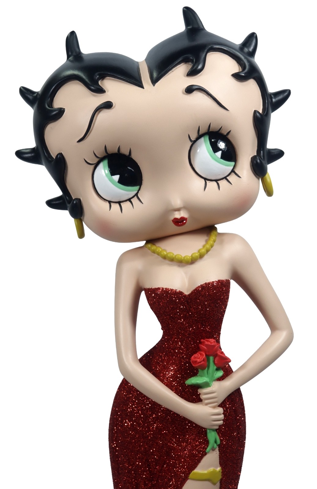 Betty Boop Holding Flowers Red Glitter Dress 38cm