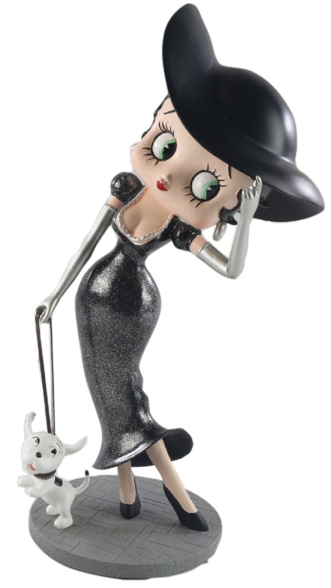 Betty Boop Walking Pudgy in Black Glitter Dress.