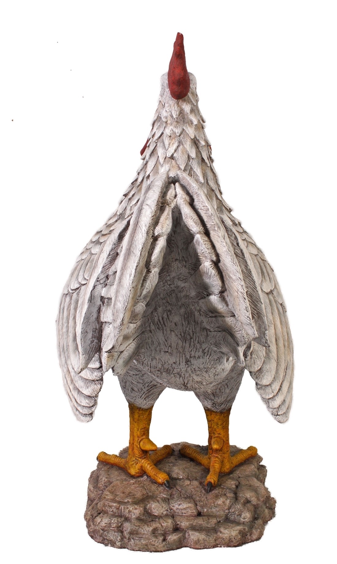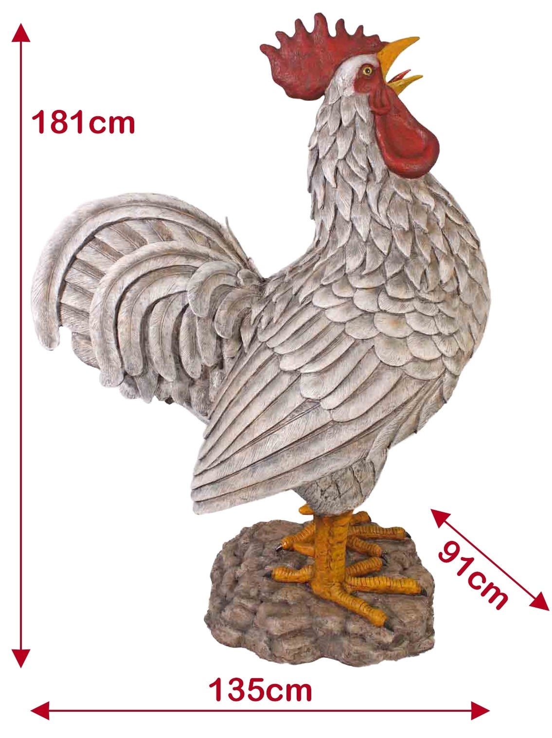 Make a bold statement in your garden, patio, or entryway with this Colossal Barnyard Rooster. Standing an impressive 181cm tall, this striking piece captures rustic charm and vibrant farmyard spirit. Crafted with attention to detail and finished in rich, lifelike colors, it’s perfect as a decorative focal point for country homes, restaurants, or outdoor displays. Durable and weather-resistant, this proud rooster brings personality and farmhouse flair to any space.