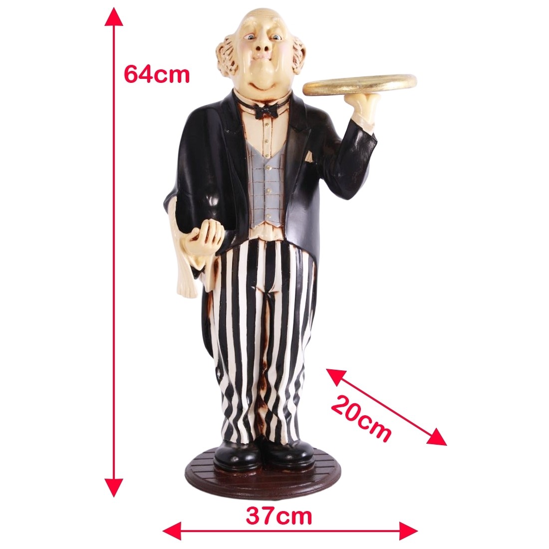 Add a touch of charm and sophistication to your home or hospitality space with the Connoisseur Wine Waiter. Standing 64cm tall, this stylish decorative figure features a classic waiter holding a serving tray and a bottle of dry white wine, dressed in elegant black-and-white striped trousers and a traditional waistcoat.