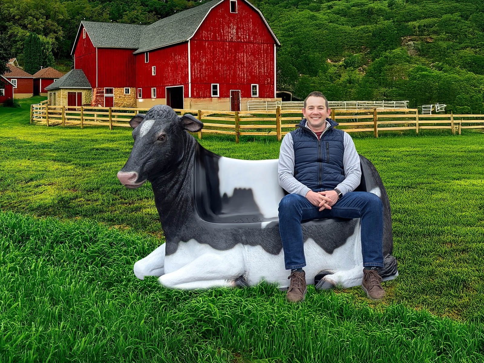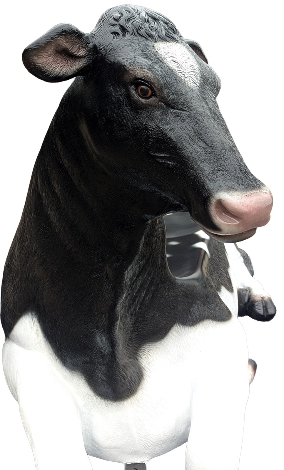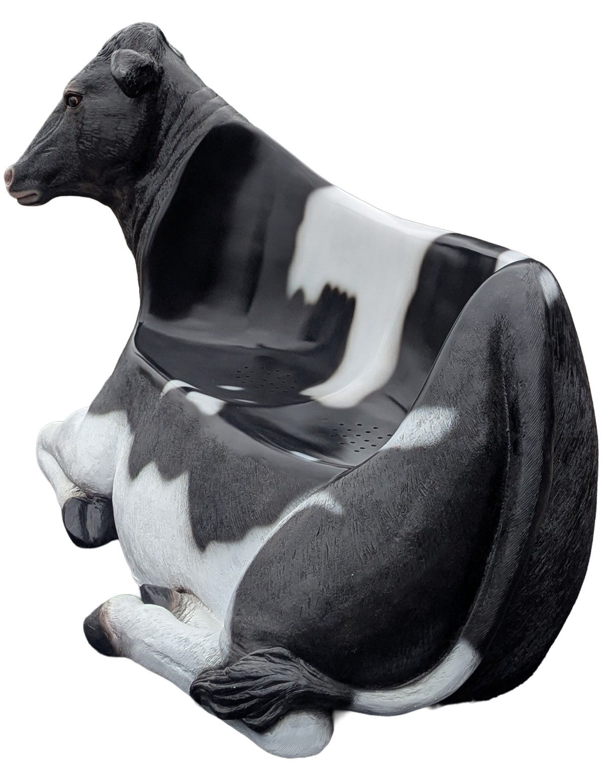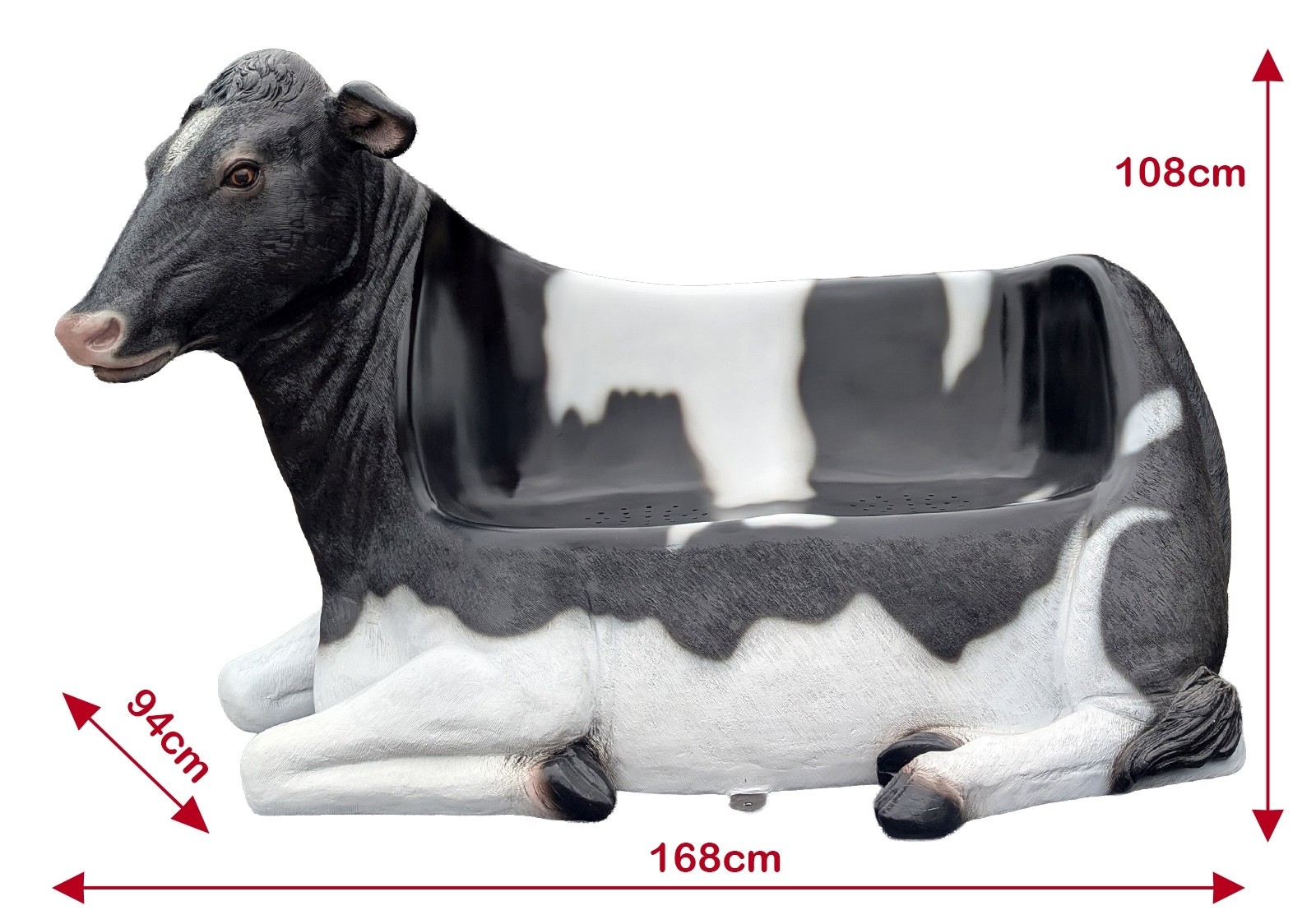 This is a high quality Fibreglass and resin statue / seat with fine detail and accurate painting. The seat is cleverly designed with perforations to drain away on a rainy day. Ideal for farm shops / garden centres / ice-cream parlours/tea rooms/coffee shops/parks or an interesting addition to your garden. Suitable for internal or external use -we recommend a coat of protective clear lacquer or exterior varnish if used outside as over time paint may fade. Will not be affected by frost unless water is allowed to collect inside the item, in which case the expansion of frozen water in to ice may cause splitting.