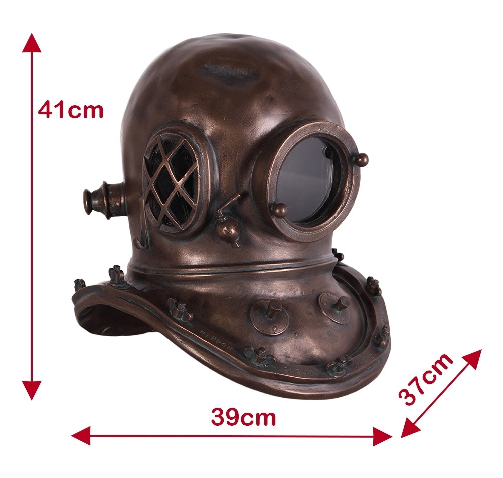 Bring nautical history to life with this Diving Helmet (41cm) in a rich bronze finish. Expertly crafted with intricate detailing, it replicates the classic deep-sea diver’s helmet design. Perfect as a statement décor piece for homes, offices, or maritime collections, combining vintage charm with timeless craftsmanship.