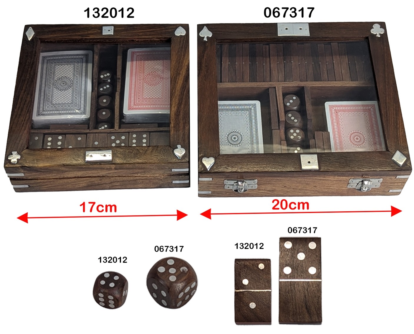 Double Card, Dice & Domino Box (Glass Lid) - 20cm