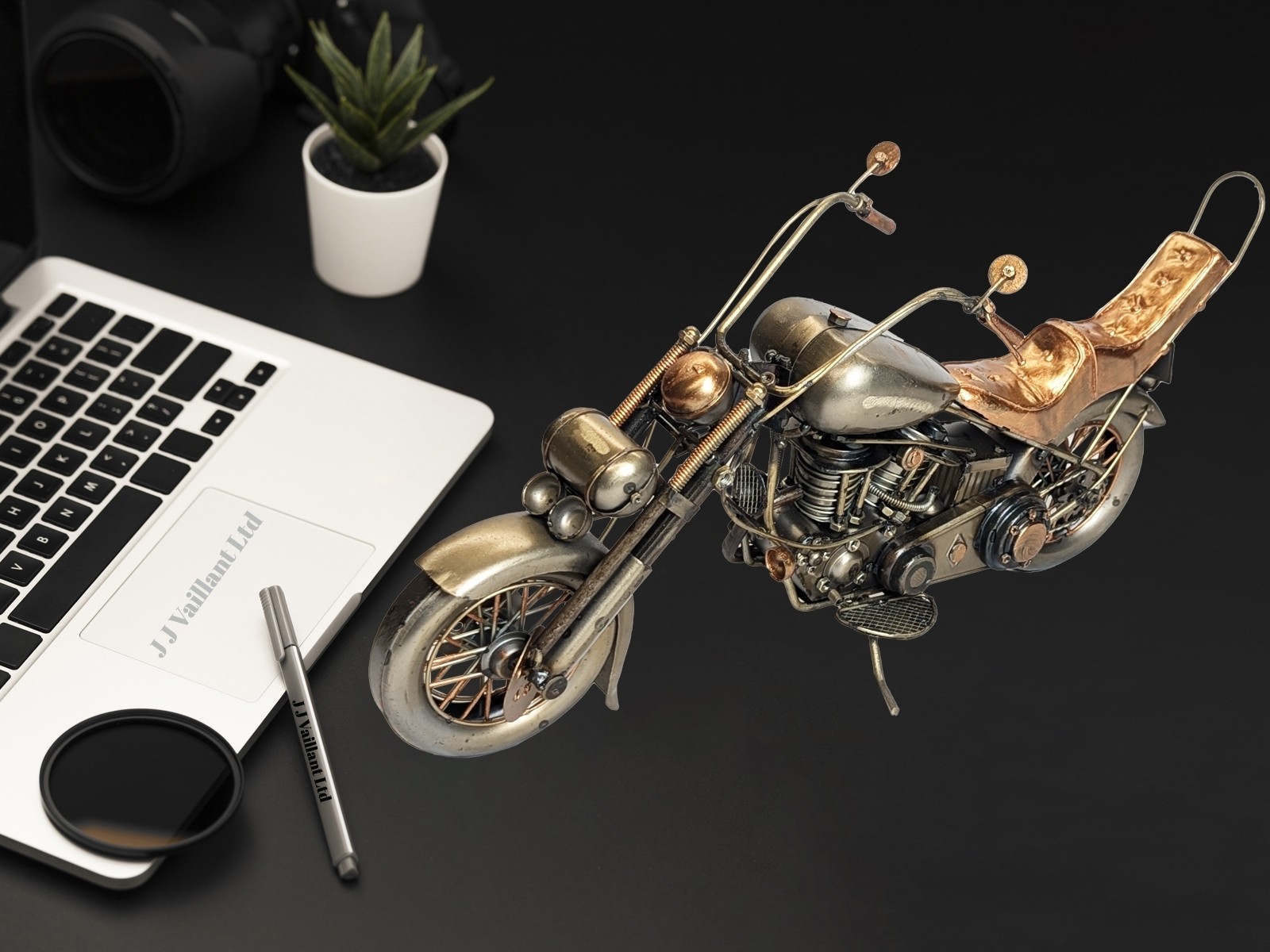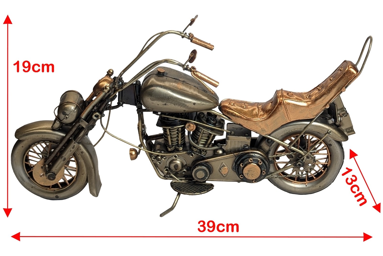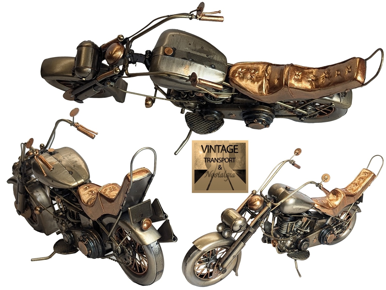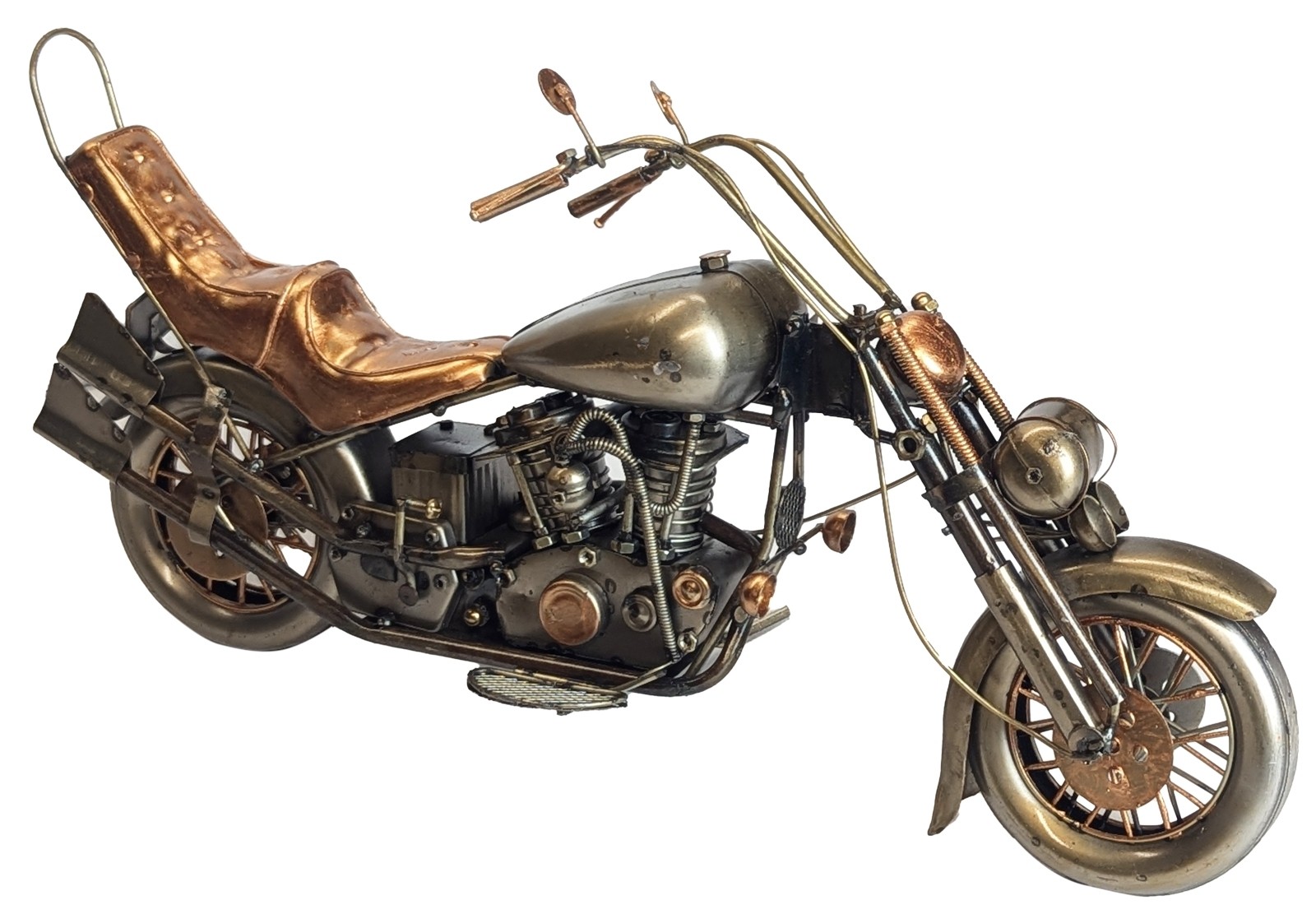 A tin plate retro model decorative Easy Rider Chopper USA Motorcycle in polished metal .