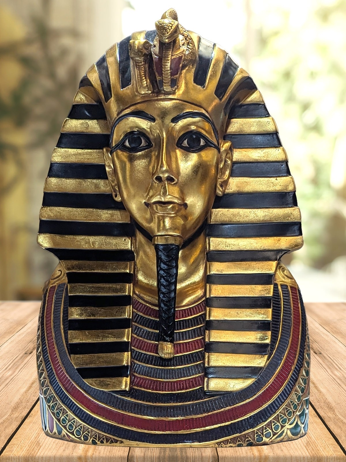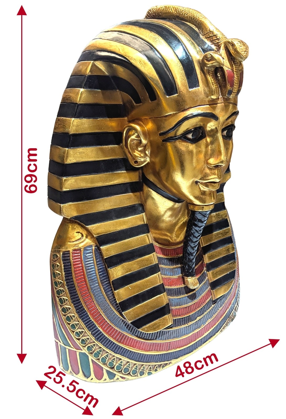 Bring the mystique of ancient Egypt into your space with this 69cm bust of Pharaoh Tutankhamun. Expertly crafted to capture the iconic headdress and regal features, this striking piece is a tribute to one of history’s most famous rulers. Perfect for history enthusiasts, themed interiors, or as a bold statement décor.