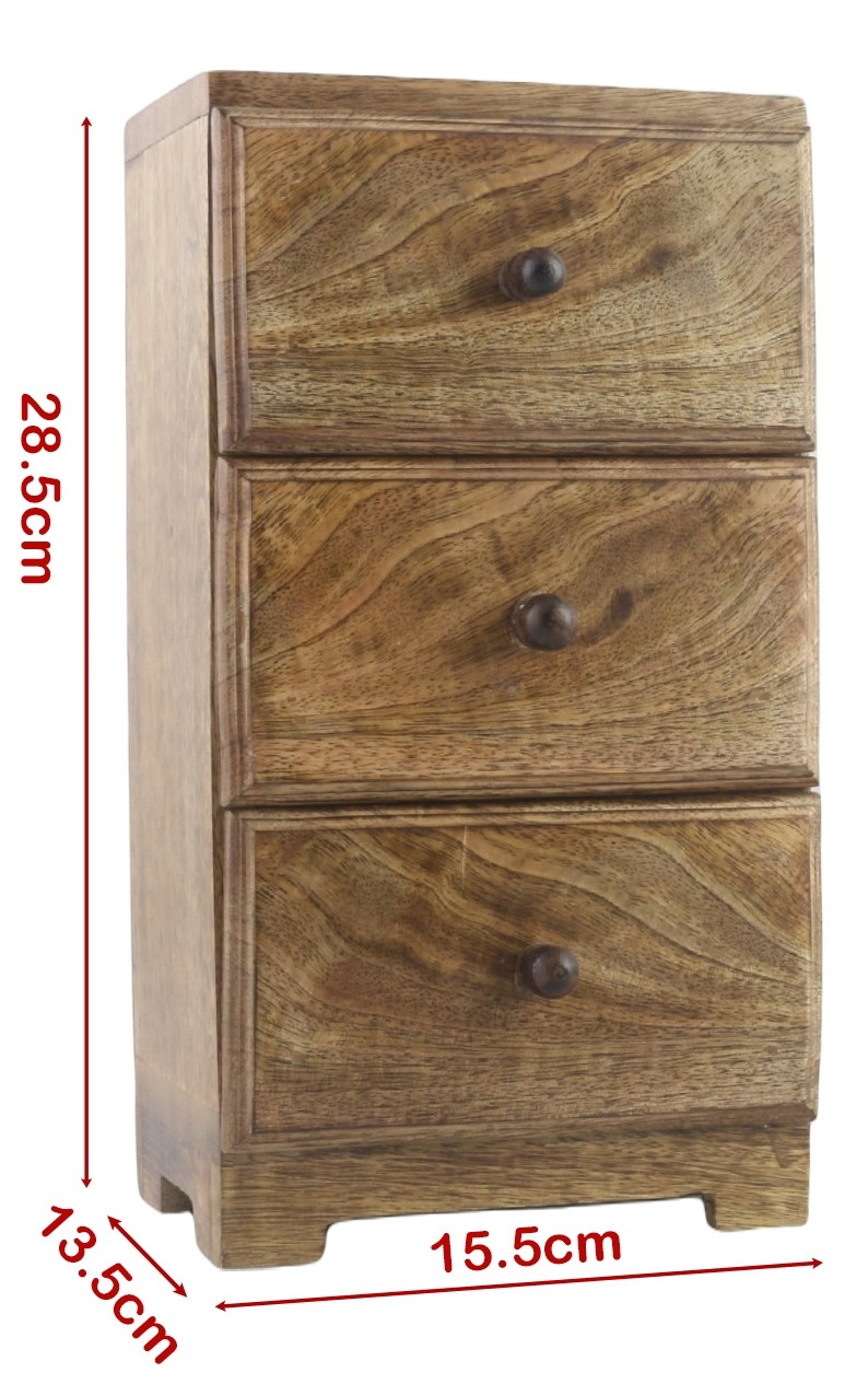 Item Measurements (cm) Height Width Depth Material Mango Wood Overall 28.5 15.5 12.5/13.5 (inc Knob) Assembly Assembled - - - - Weight (kg) 1.48 - - - -