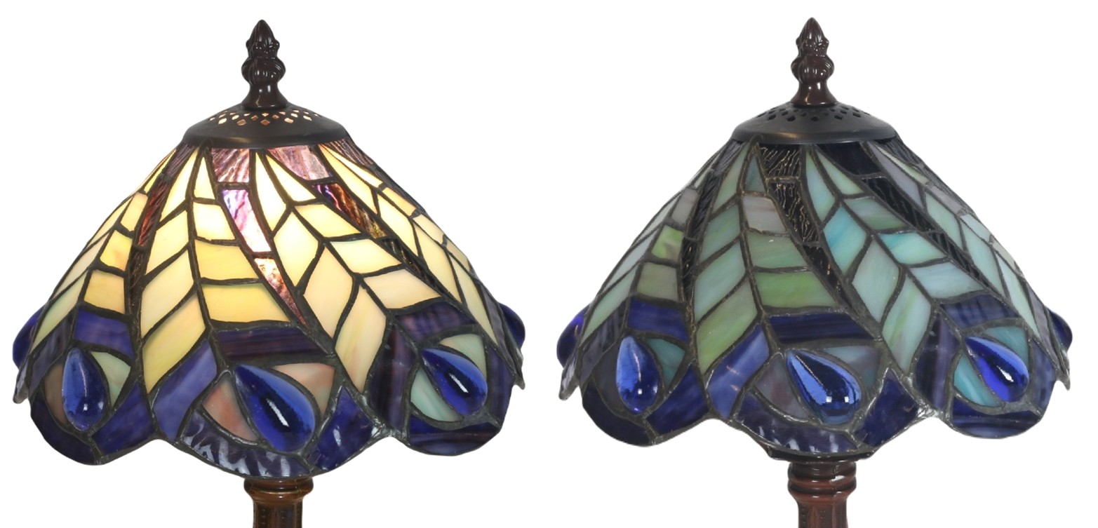 Peacock Tiffany Table Lamp - 30cm + Free Bulb