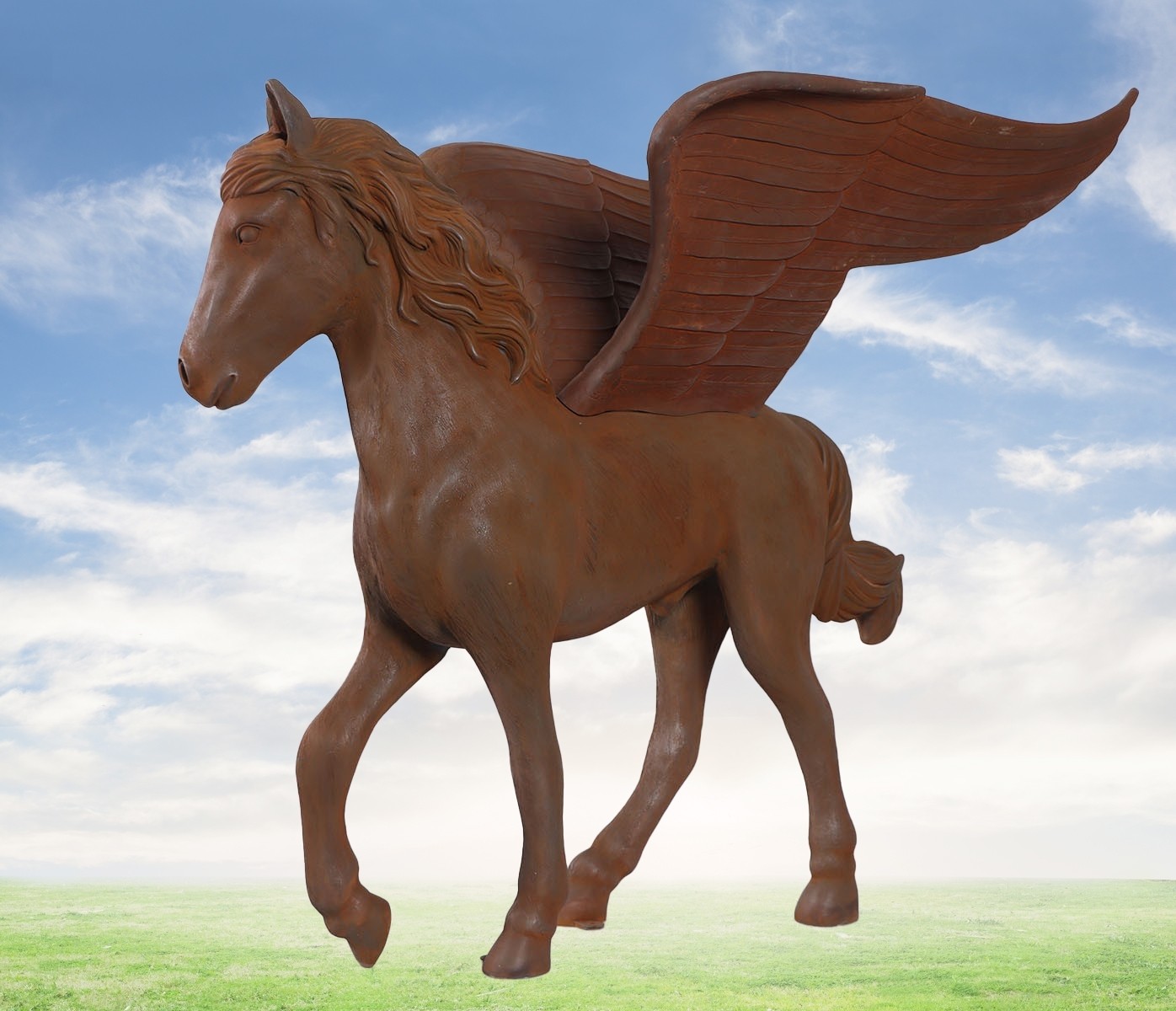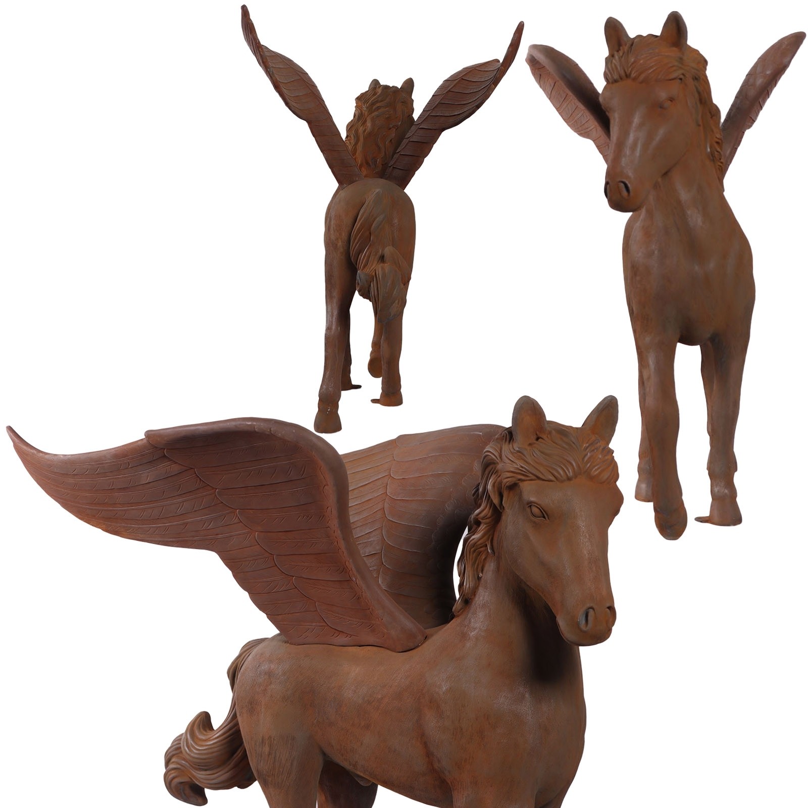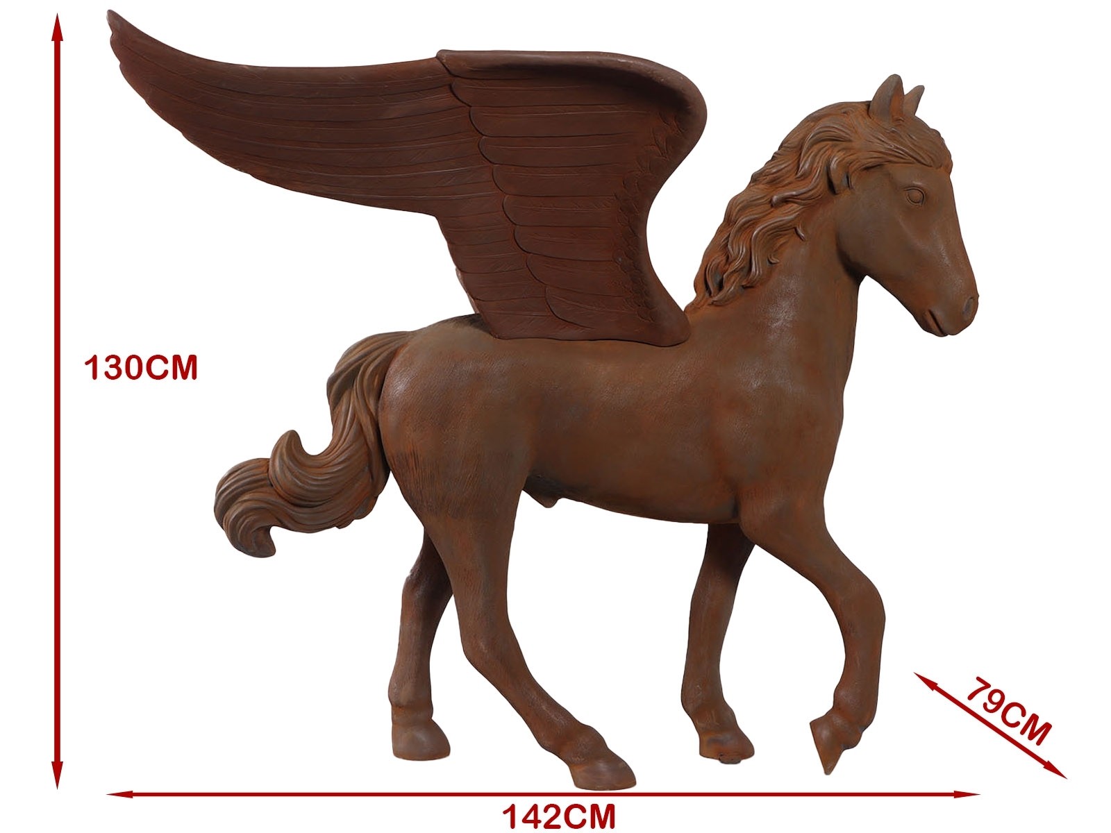 Elevate your space with mythical charm using this 142cm Pegasus sculpture in a rustic finish. Featuring the iconic winged horse in mid-motion, this piece blends fantasy and elegance with a weathered, antique look. Perfect as a striking focal point in gardens, courtyards, or entryways, it’s crafted from durable materials to withstand the elements while aging beautifully over time.
