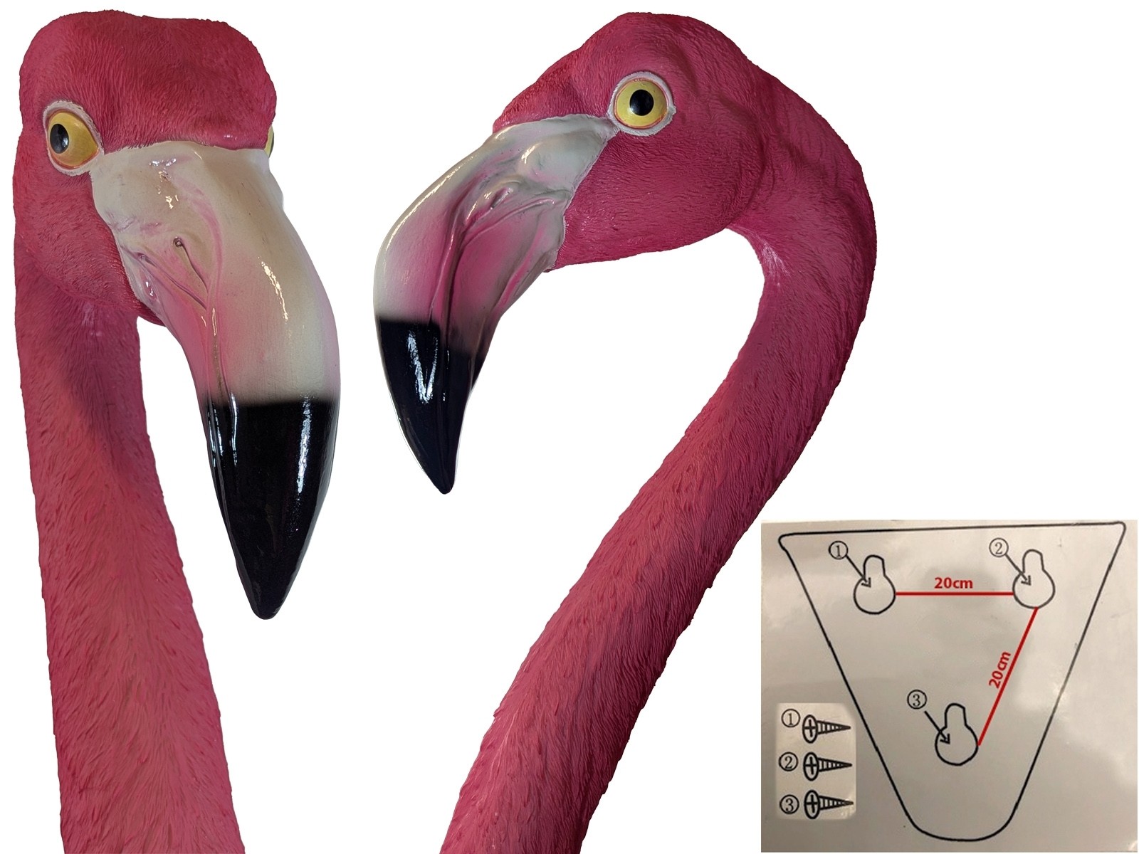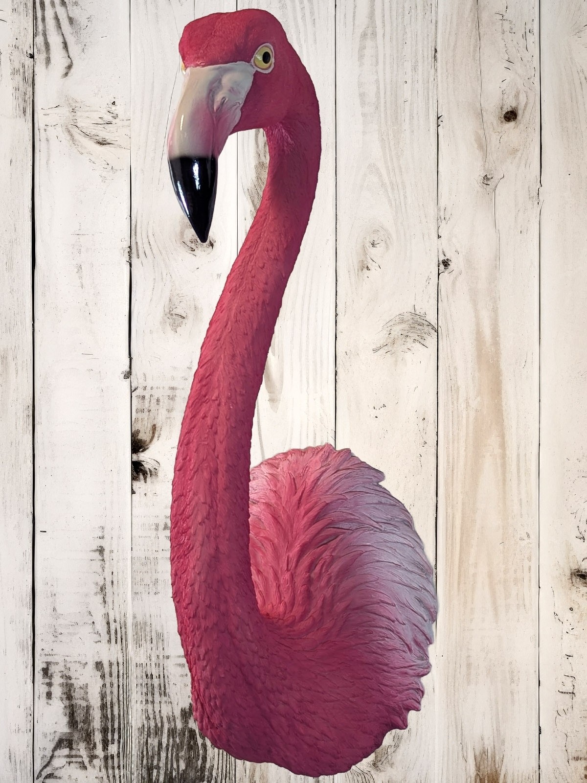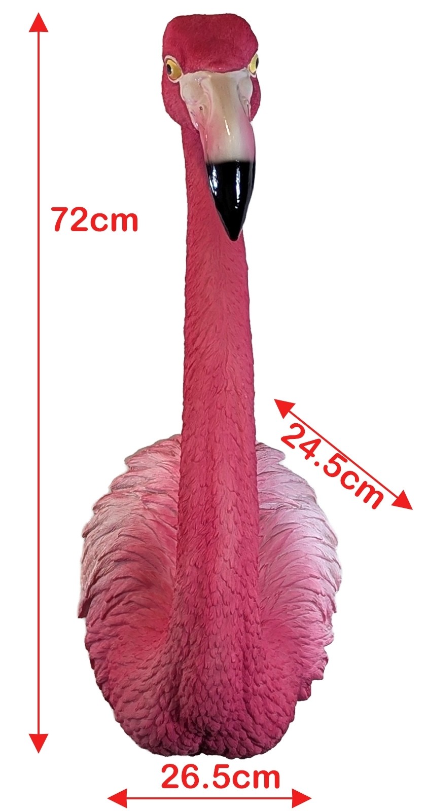 Bring a bold splash of color and tropical charm to your space with this stunning Pink Flamingo head wall hanging. Nicely cast in polystone with a hand painted finish. Measuring 72cm tall, this eye-catching piece features lifelike detailing and a vibrant pink finish that instantly livens up any wall.