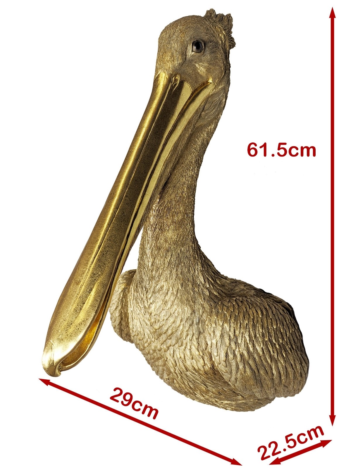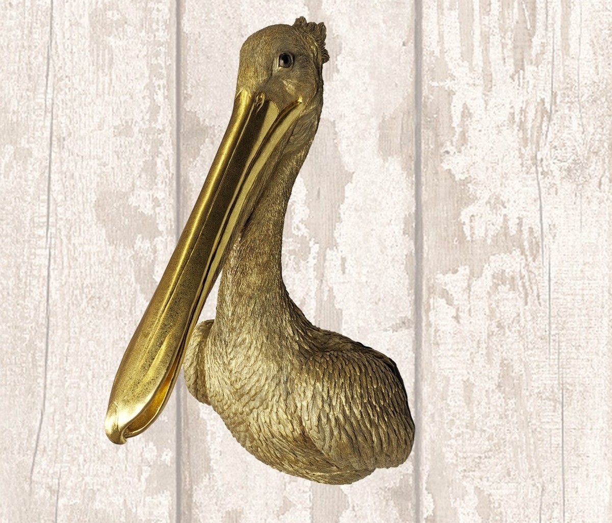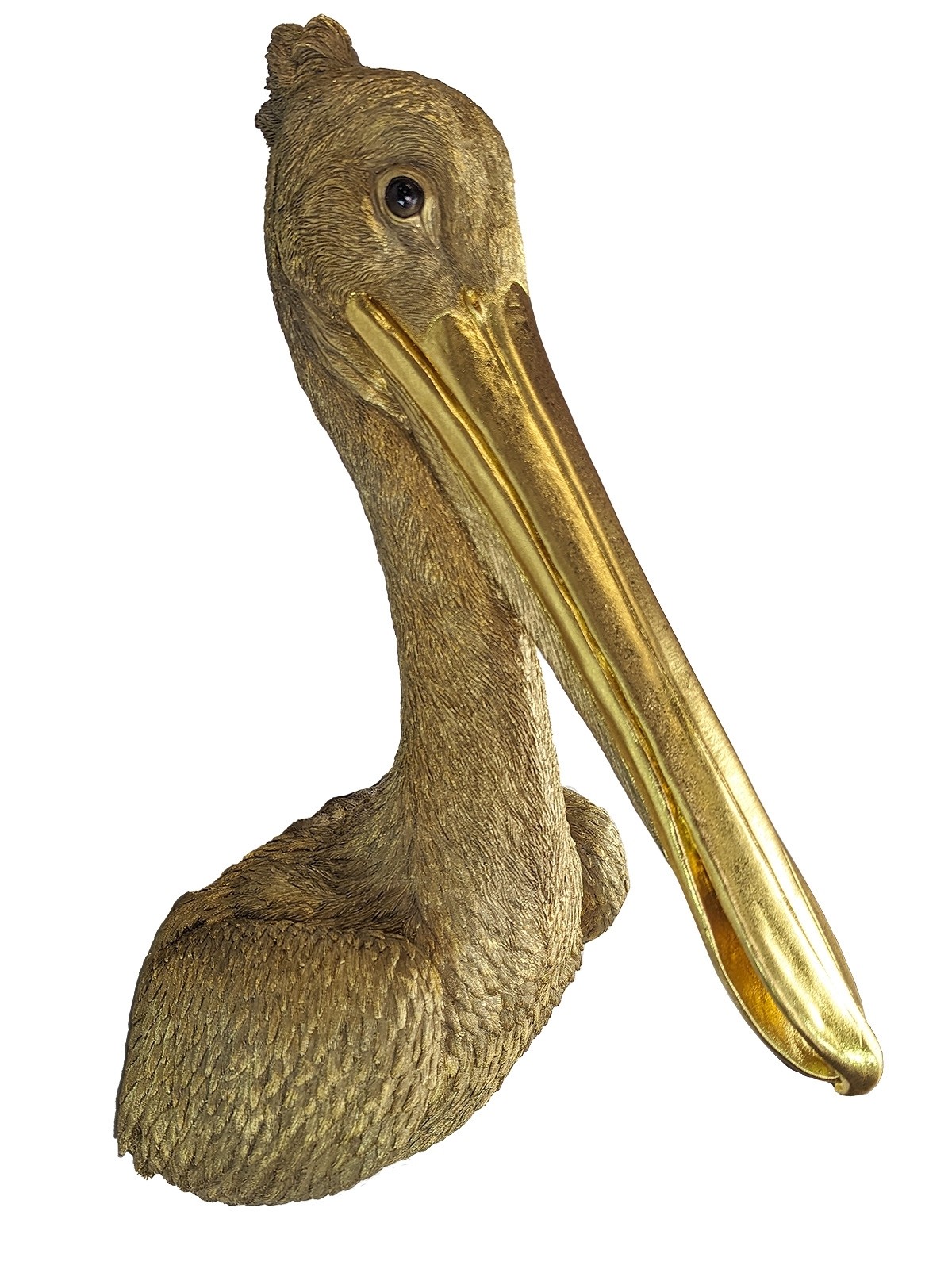 Gold Pelican Head Wall Art Faux Taxidermy - 61.5cm