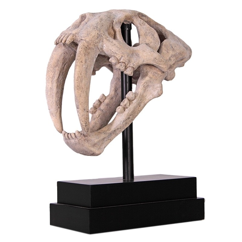 Saber Toothed Tiger Skull on Base - 51cm - Roman Stone Finish