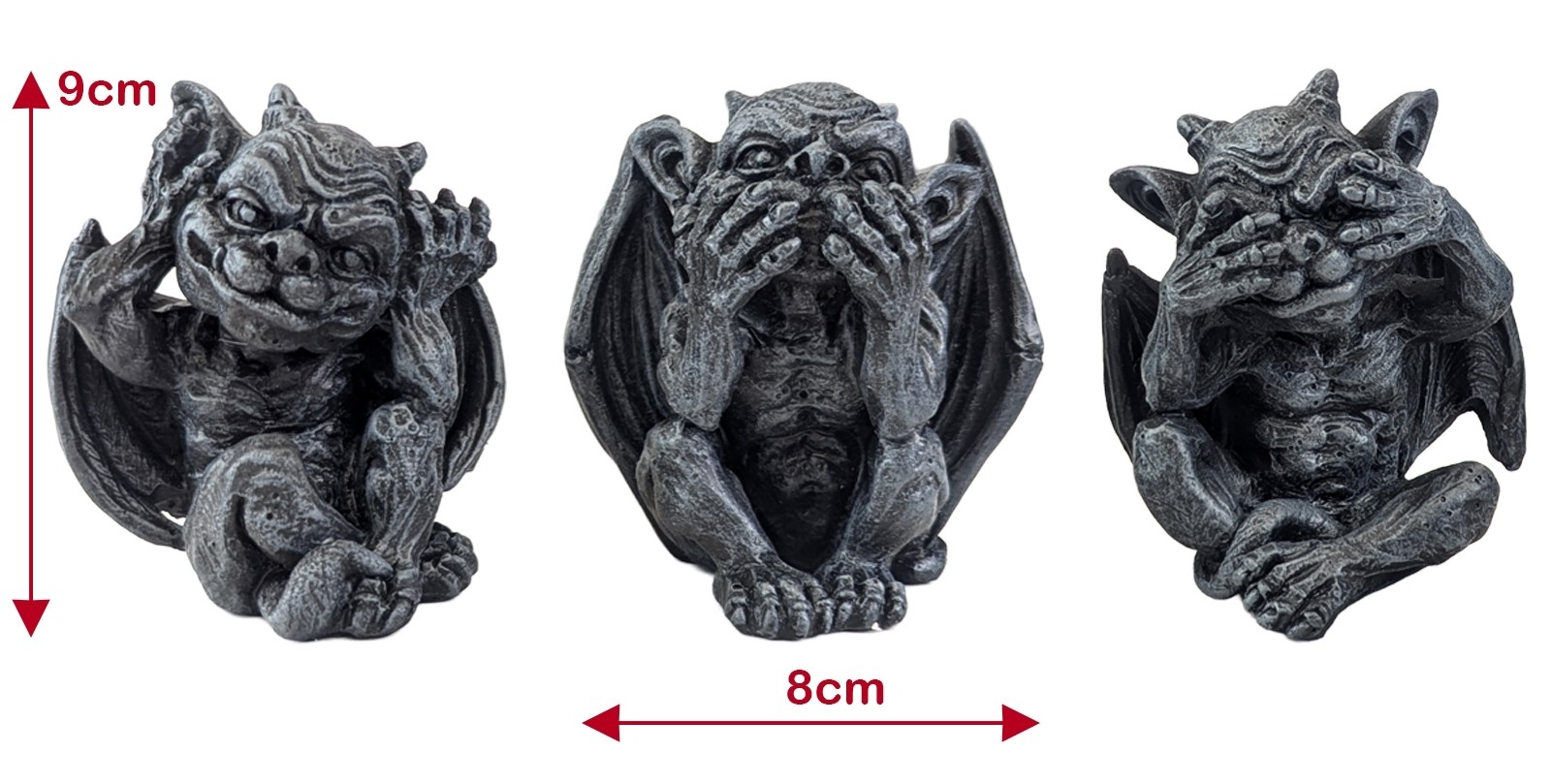 Set of 3 No Evil Little Gargoyles - Hear, See And Speak No Evil - 9cm