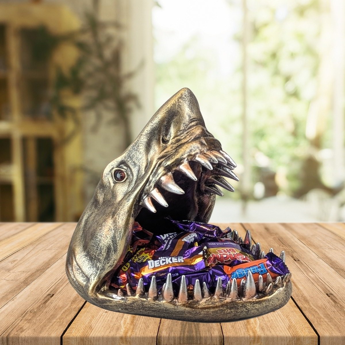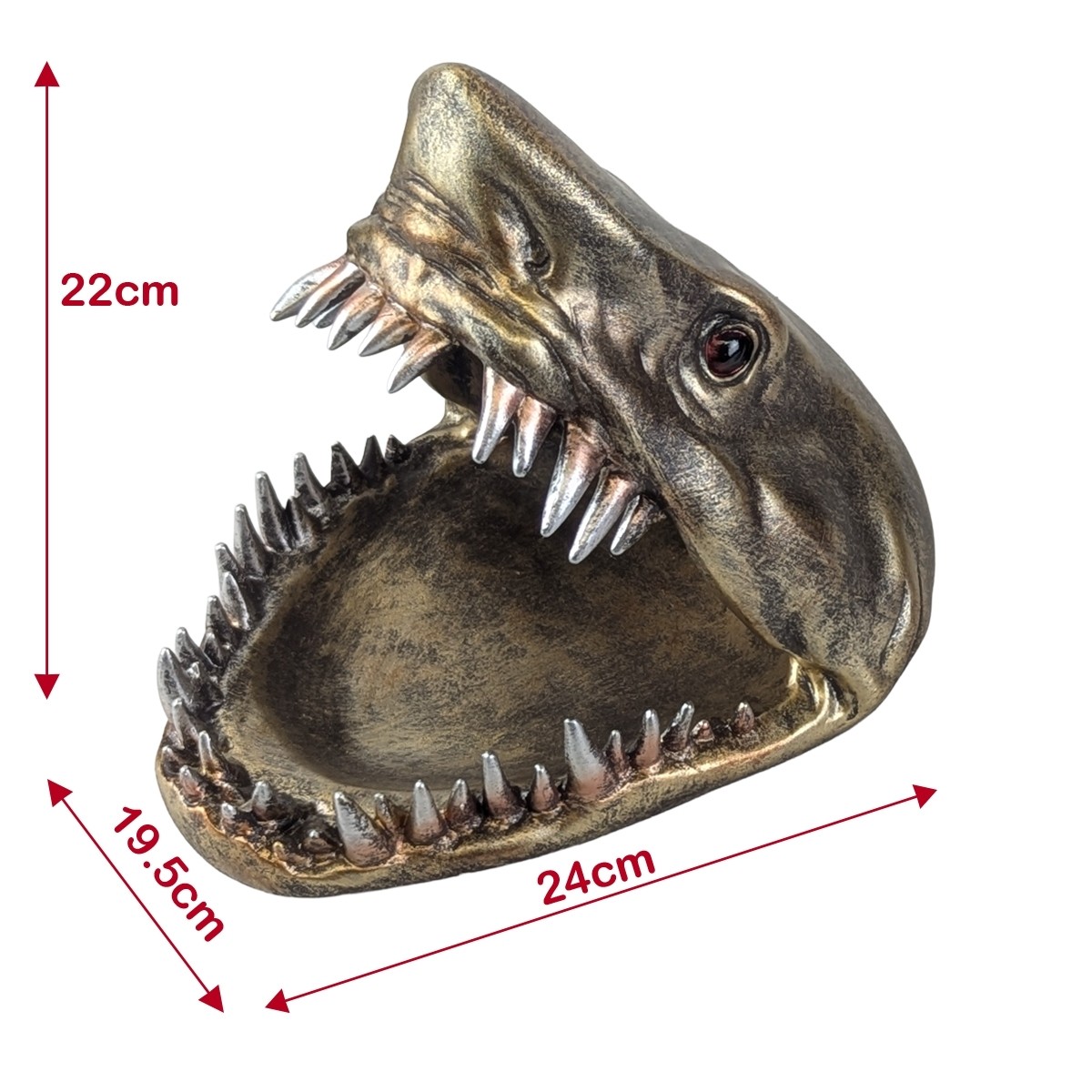 Add a fun and quirky touch to your décor with this Shark Head Trinket and Sweet Dish. Measuring 24cm, the bold shark design features an open mouth perfect for holding sweets, keys, or small treasures. Both practical and eye-catching, it makes a great accent piece for coffee tables, desks, or shelves.