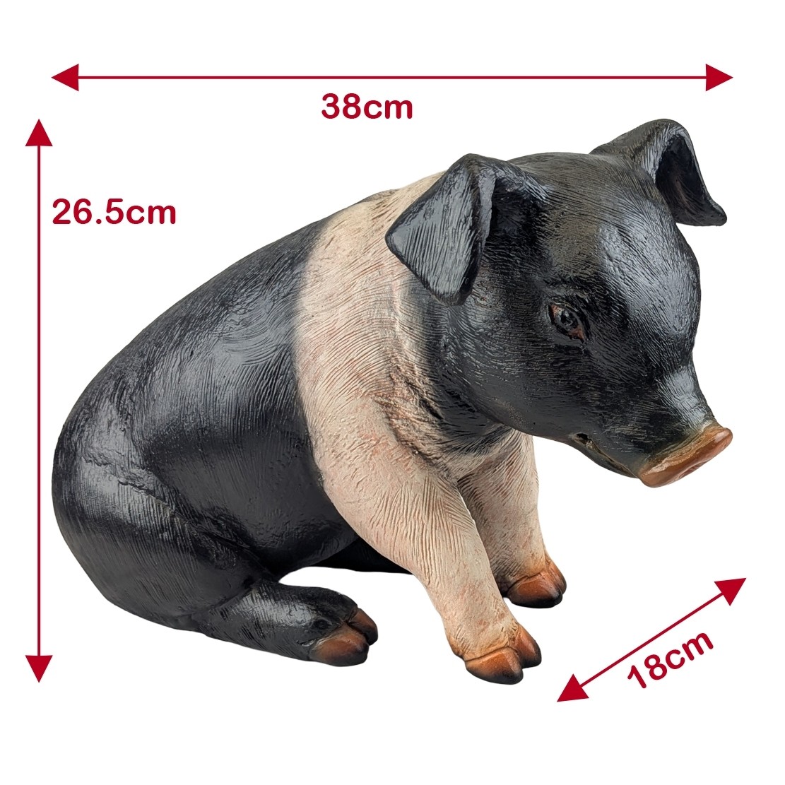 Impressively detailed piglet figure, Made from polyresin reinforced fibreglass. Realistically hand painted, these ornamental pieces are sure to get a second glance. Ideal for displaying in any room or garden area, will make superb featured displays within shops, themed restaurants, pubs, theatres and animal establishments. Suitable for internal or external use - we recommend a coat of protective clear lacquer or exterior varnish if used outside as over time paint may fade. Will not be affected by frost unless water is allowed to collect inside the item, in which case the expansion of frozen water in to ice may cause splitting.