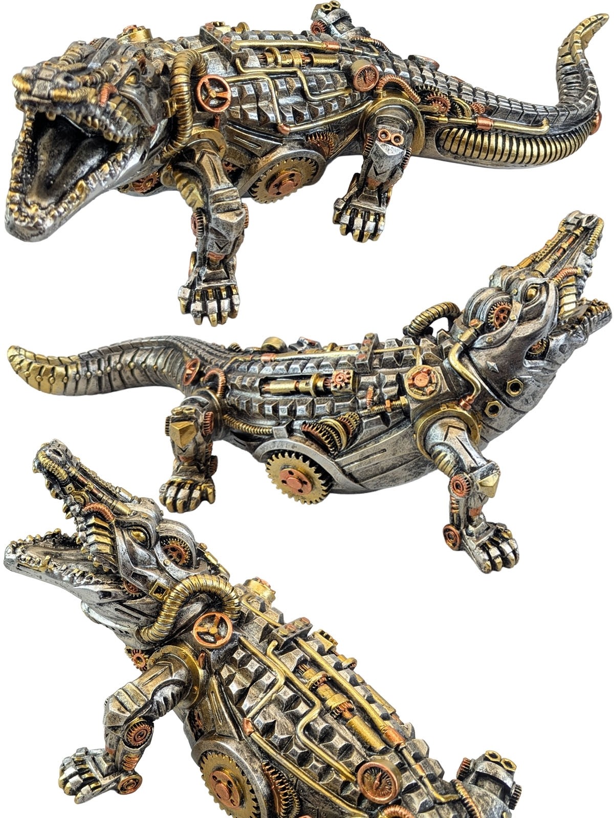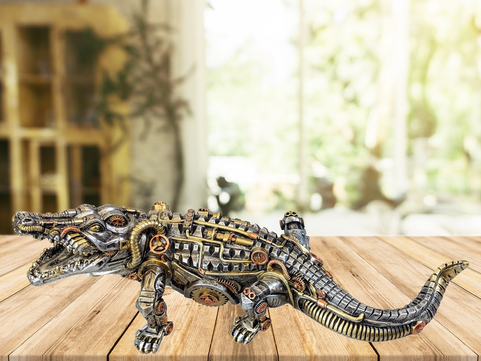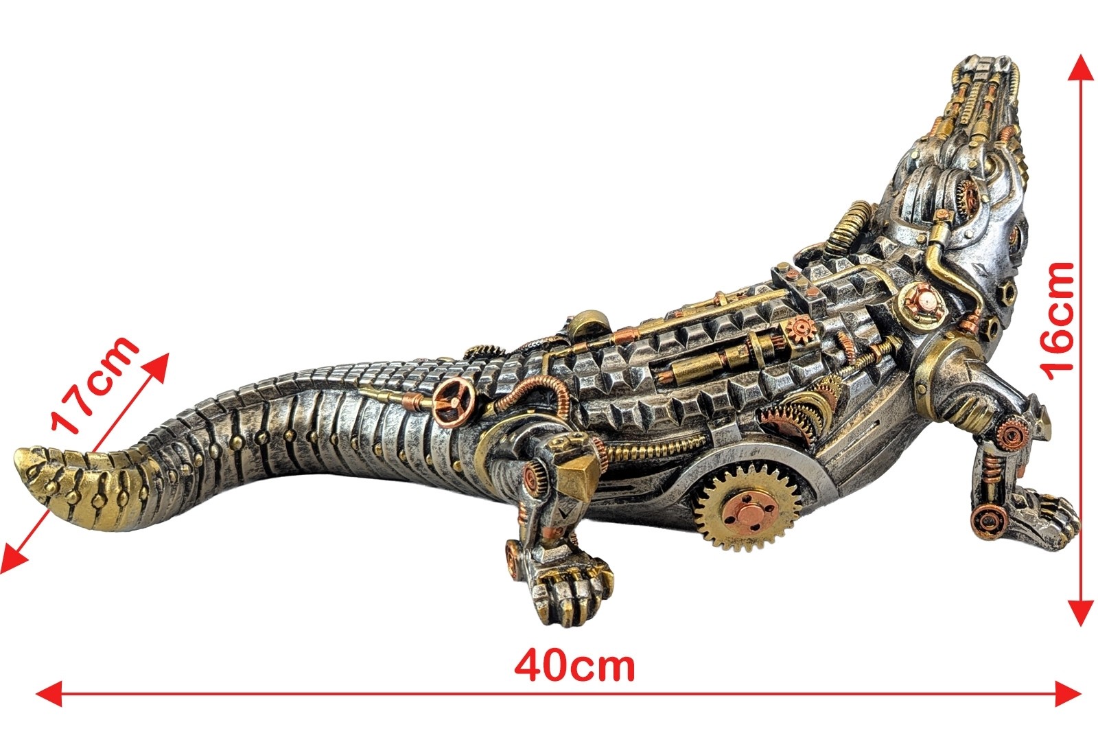 Make a bold statement with the Steampunk Mechanical Crocodile. At 40cm, this intricately designed piece combines industrial steampunk elements with the fierce form of a crocodile, perfect for adding a unique, edgy touch to any collection or space.