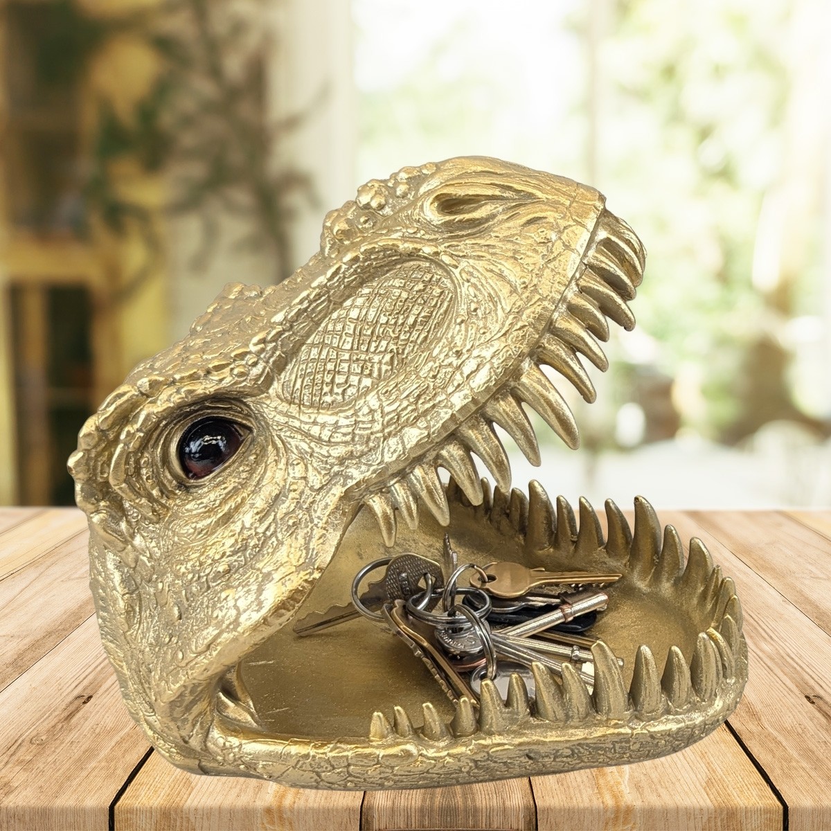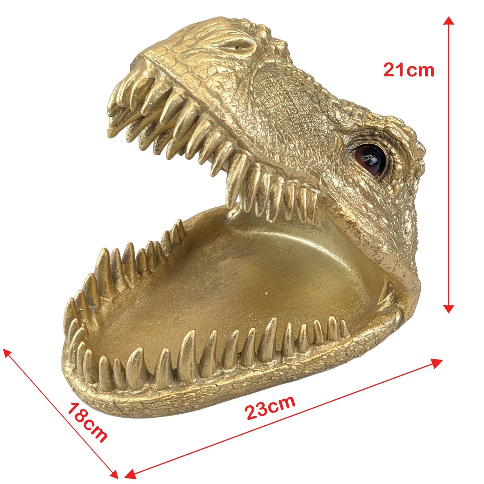 Add a roar-some touch to your home décor with this fun and functional T-Rex Trinket/Sweet Dish. Measuring 23cm, this quirky ceramic dish features a detailed T-Rex design perfect for holding sweets, jewelry, keys, or other small treasures. Ideal for dinosaur lovers or as a playful statement piece in any room.