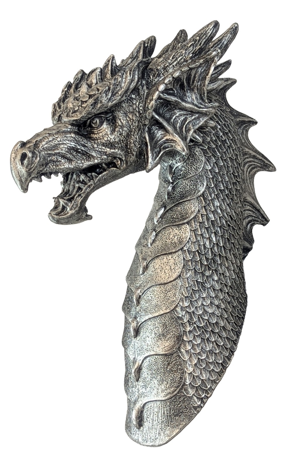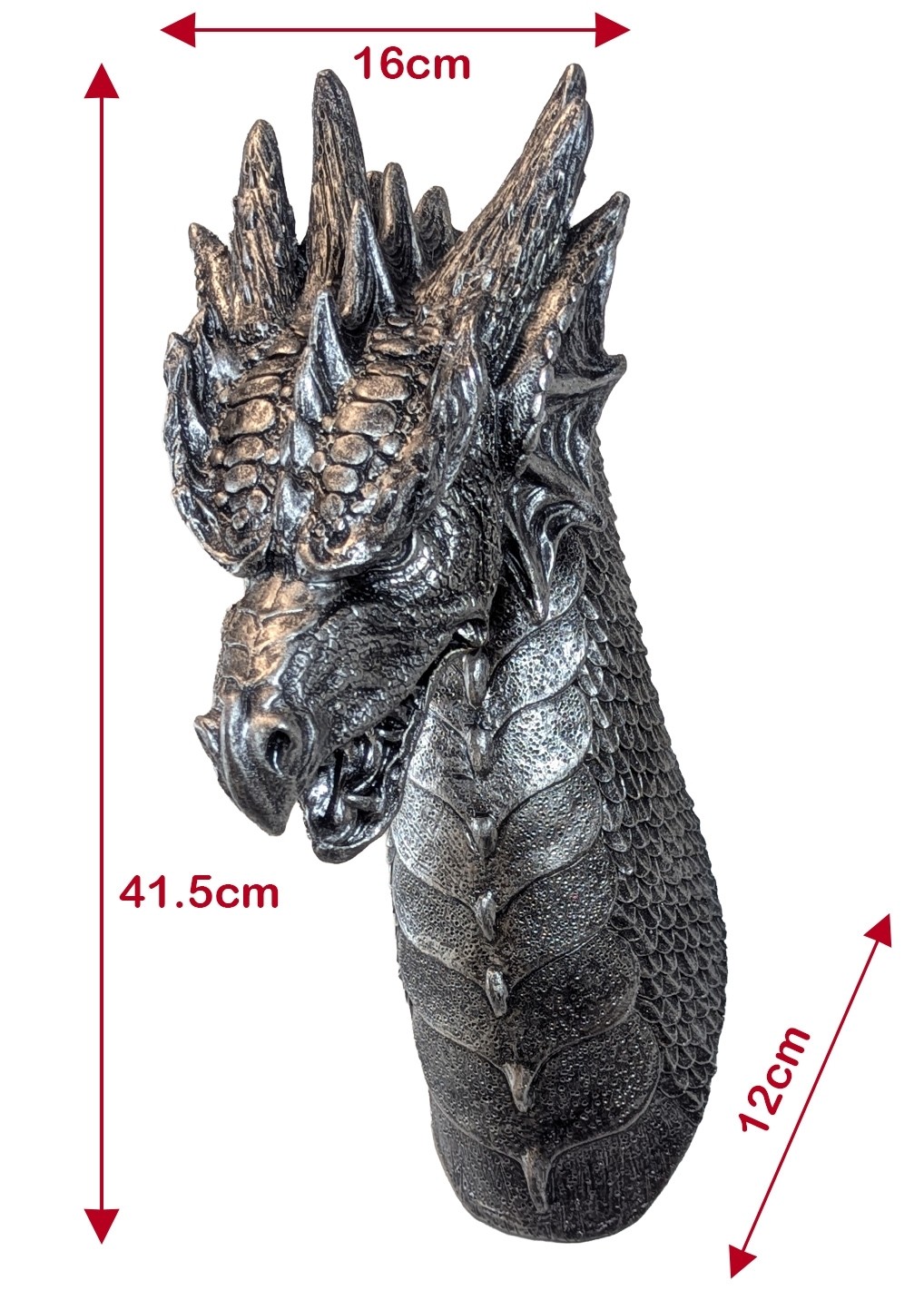 Create a dramatic focal point with this Dragon Head Wall Hanging, measuring 41.5cm. Featuring bold detailing and a powerful, sculpted design, it brings a touch of fantasy and gothic style to any wall. Perfect for living spaces, games rooms, or themed décor, this striking piece adds instant character and visual impact.