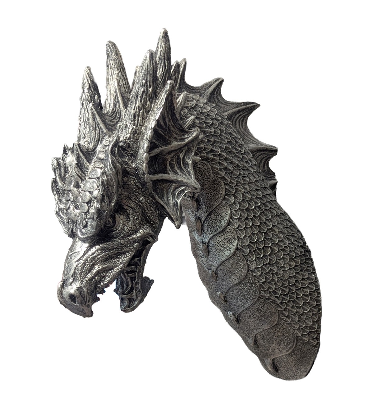 Create a dramatic focal point with this Dragon Head Wall Hanging, measuring 41.5cm. Featuring bold detailing and a powerful, sculpted design, it brings a touch of fantasy and gothic style to any wall. Perfect for living spaces, games rooms, or themed décor, this striking piece adds instant character and visual impact.